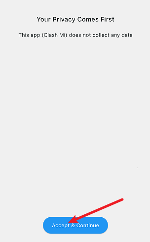 打开 ClashMi App,点击底部的Accept & Continue按钮