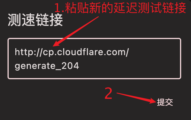 点击测速链接然后复制下面的测速链接并在输入框粘贴上新的测速链接