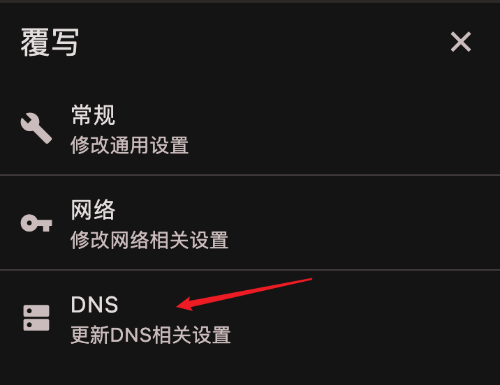 返回覆写卡片,然后点击DNS