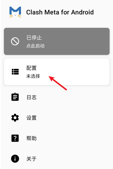 安装并打开 ClashMeta Android 应用程序,点击配置