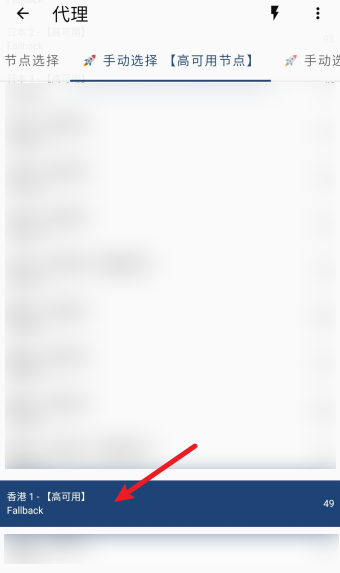 如果想要固定使用某节点,需要先在节点选择中选择手动选择 【XX节点】, 这里以手动选择 【高可用节点】为例